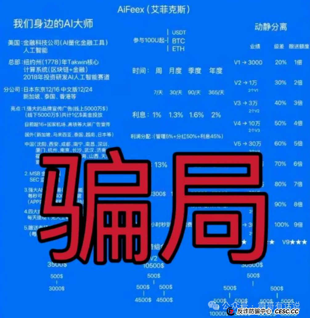 老铁们注意了!震哥今儿必须给你们扒一扒这个叫艾菲克斯(AIFeex)的量化资金盘。超高收益背后的真相这个平台去年12月上线,搞什么周基金、月基金、年基金托管,吹得天花乱坠,说每天有1%