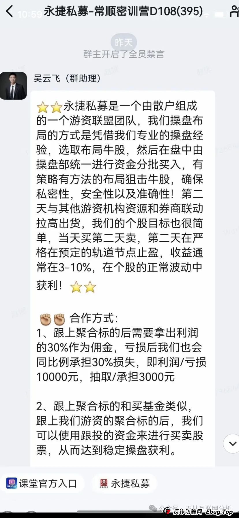永捷私募股票跟单类资金盘骗局,目前已经开始大量单割,操盘手圈钱过千万,目前2千多会员,高度预警,即将崩盘跑路!近期此诈骗团伙大量投诉举报文章想掩盖诈骗真相,随便举报会一直发,后面会联合全网曝光: